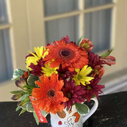 Price: $73.99Orange Gerbera Daisies Fall Peanuts Snoopy Woodstock Football Mug