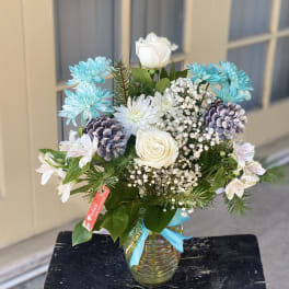 Price: $128.99 Pink Peonies & Pinecone Winter Elegance Cube Vase Arrangement Product Tags: Same-day Delivery