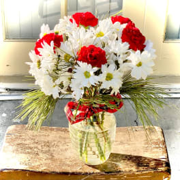 Price: $85.99 Beautiful Red Roses Pinecones Ornament Arrangement Product Tags: Best seller Same-day Delivery