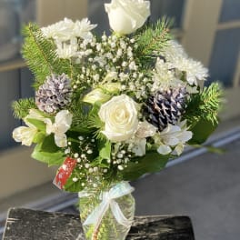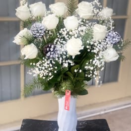 Price: $85.99 Beautiful Red Roses Pinecones Ornament Arrangement Product Tags: Best seller Same-day Delivery
