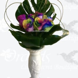 Price: $135.99 Phalaenopsis Orchids & Hot Pink Roses Luxury Cube Vase Product Tags: Same-day Delivery