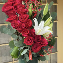 Price: $156.99 Red Roses &lilies Two, Three or Four Dozen Hand Wrapped Bouquet Product Tags: Same-day Delivery
