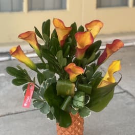 Price: $85.99 Mini Calla Lily Mango / Orange Bouquet AVAILABLE NOW SAME DAY DELIVERY! Product Tags: Same-day Delivery